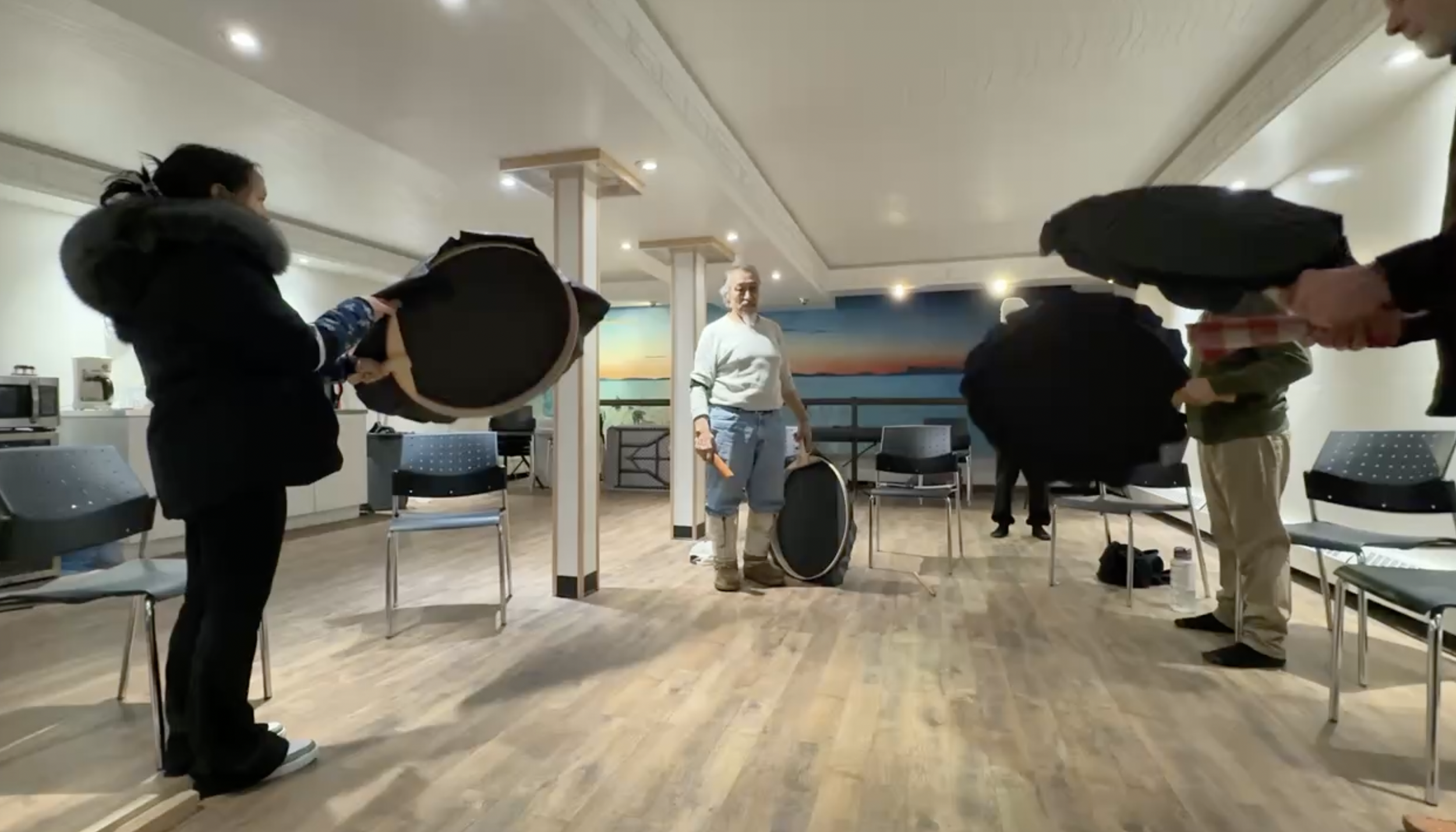 In late January, community members in Kugluktuk gathered for a special community concert and film premiere that celebrated Inuit musical storytelling, drum dancing, and the deep cultural significance of Inuuhiqaqtut Naunaitkutait. Held alongside Artscan Circle’s three-day music and songwriting workshop, the event brought together local cultural leaders, youth, and visiting mentors for an evening of shared stories, song, and celebration.