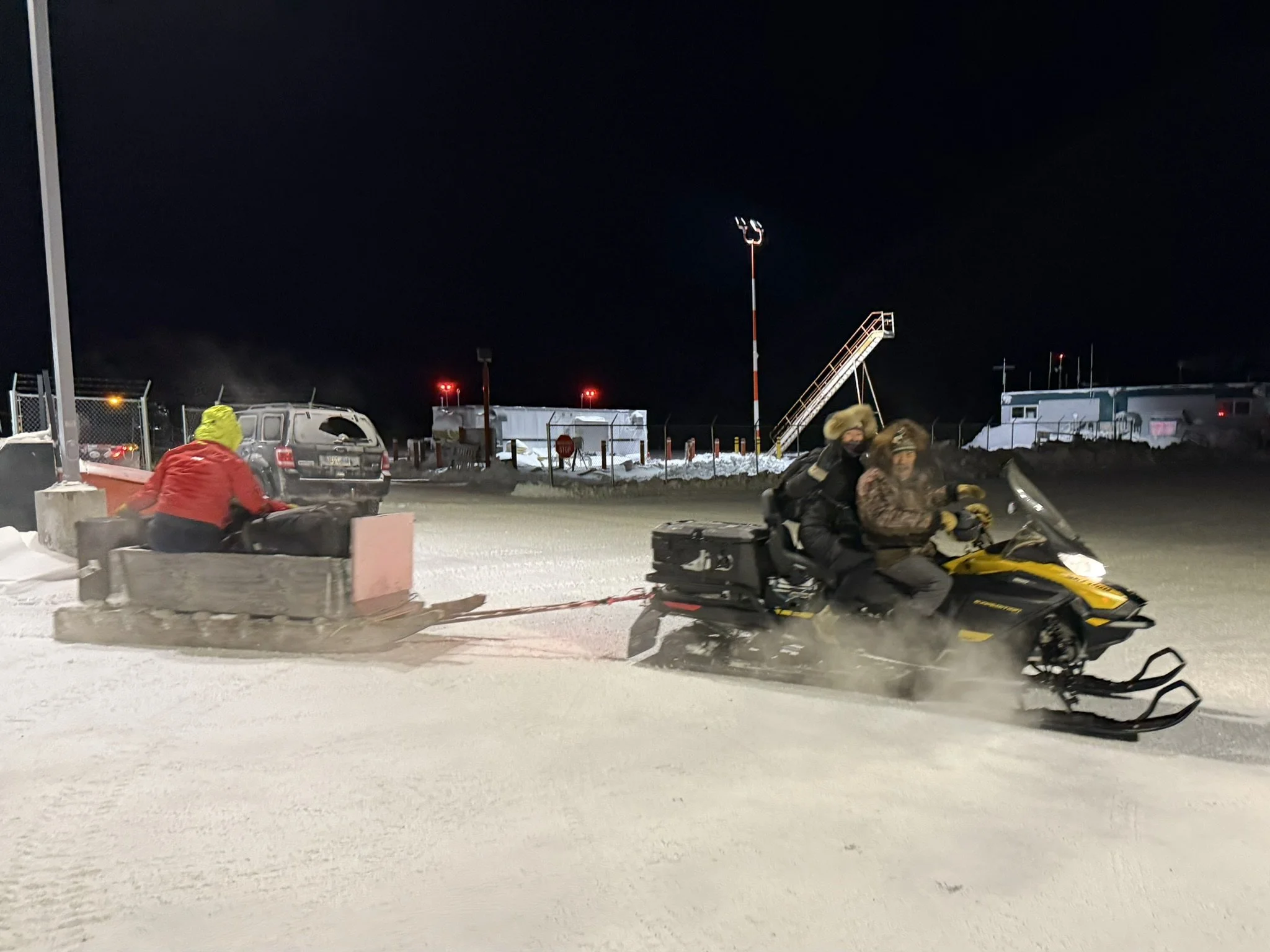 Four of us—Barney, Dustin, Lynn and I—arrived in Kugluktuk on the flight from Yellowknife last Monday and were welcomed by Joe and Susie Evyagotailak at their home. Joe met us at the airport and was our Skidüber driver to get our instruments and other stuff to their place—Frosty but fun!
